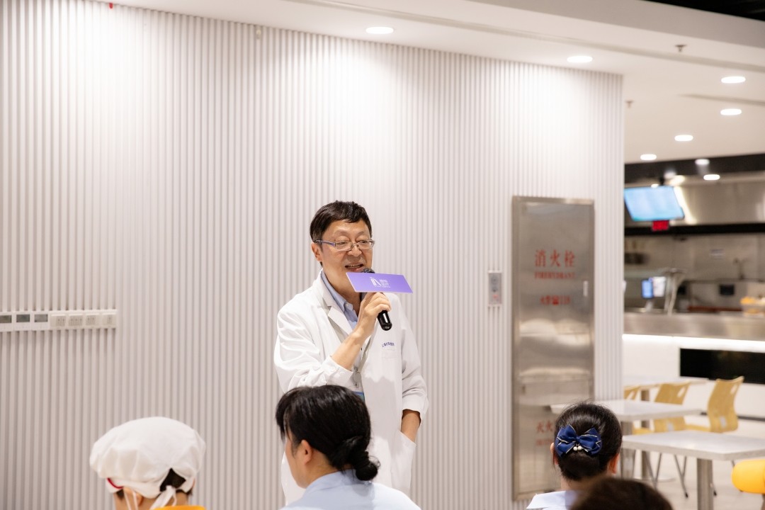活动中,各院区营养师结合临床营养经验和最新研究成果,详细介绍了肠道传染病的传播途径、临床表现、预防方法等知识,并通过生动的案例讲解和互动问答,向大家强调了食品卫生在预防肠道传染病中的重要性。同时,为了更好地将肠道传染病知识普及到基层,他们还分别组织静安院区和闵行院区的食堂工作人员进行肠道传染病知识的专题培训,围绕肠道传染病的识别、预防以及食堂卫生管理等内容进行了深入浅出的讲解,教授大家如何正确洗手、戴口罩等个人卫生防护措施,进一步加深食堂工作人员对肠道传染病和食品卫生的认识。