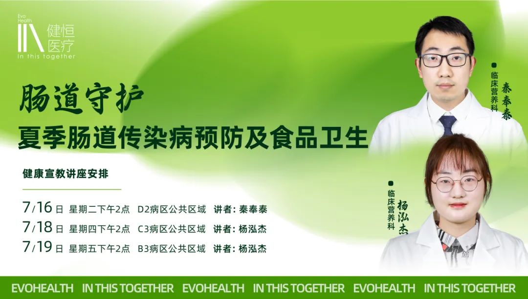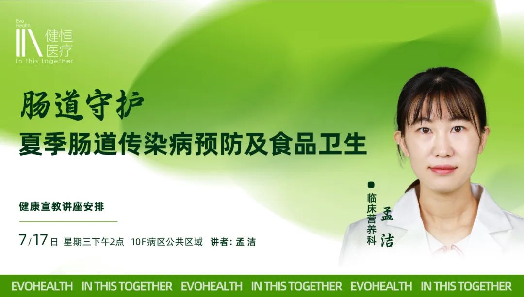 为有效预防和控制夏季肠道传染病的发生与传播,切实提升公众对肠道传染病的认知与自我防护能力,健恒医疗集团在下属静安院区上海好望角医院、闵行院区上海进康肿瘤医院举办为期一周的“夏季肠道传染病预防及食品卫生宣传周”活动。