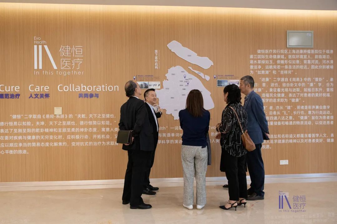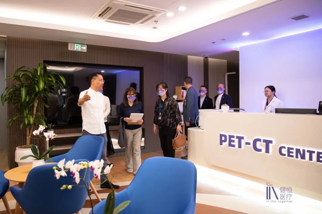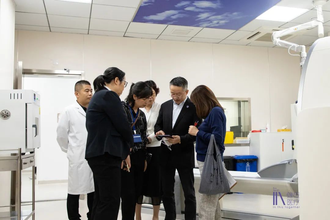 麦谷步医务官一行先后实地考察了门诊综合服务区、国际医疗部、肿瘤放疗科、PET-CT中心、放射科、肿瘤内科病房、日间诊疗中心、健恒医学人文空间馆等区域,并听取了相关科室负责人对医院病区、患者收治、设备技术、学科建设及医疗服务等方面的详细介绍。