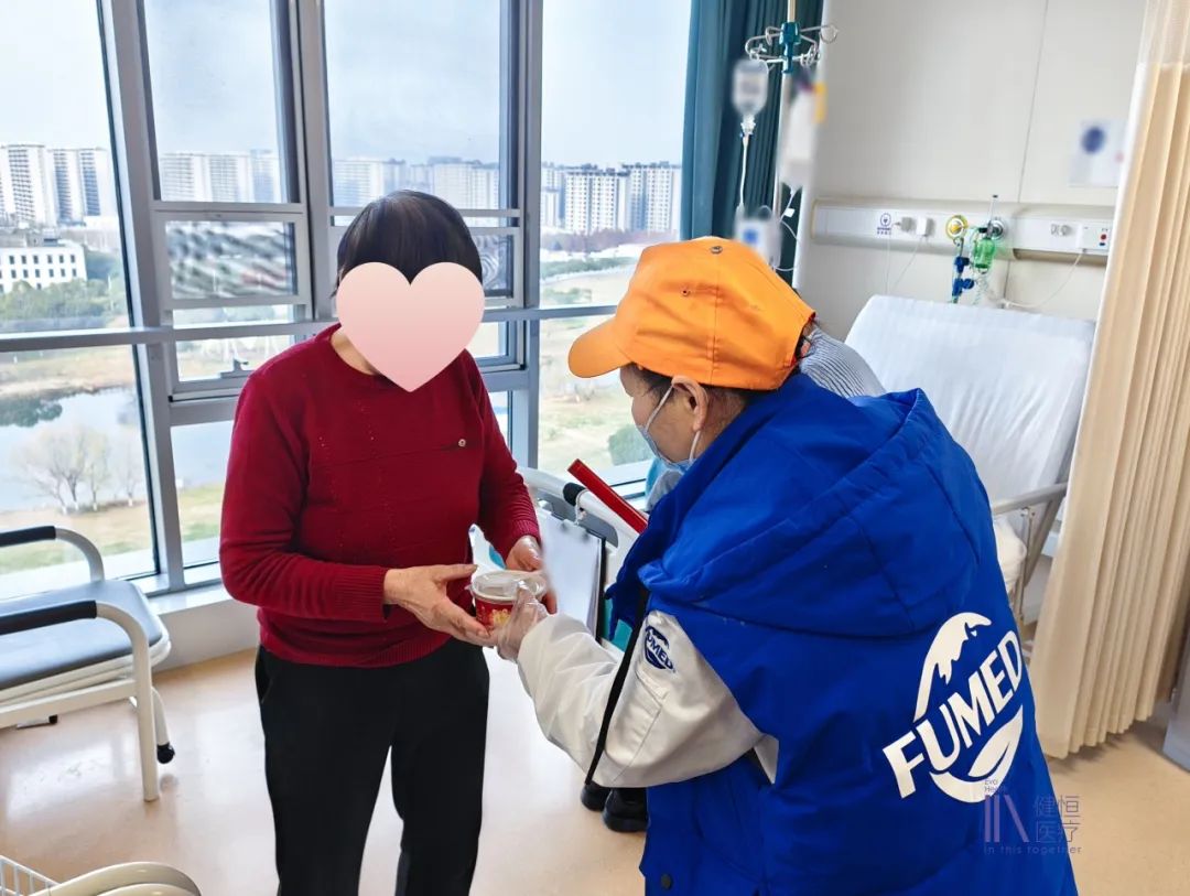 当患者们接过这一碗碗满载祝福的腊八粥时,他们的脸上绽放出由衷的惊喜与感激的笑容,有的患者甚至被这突如其来的关爱感动得热泪盈眶。在这一刻,腊八粥不仅仅是一份节日的食品,它更成为了连接社会与患者之间的情感纽带,传递着无尽的关爱与希望。