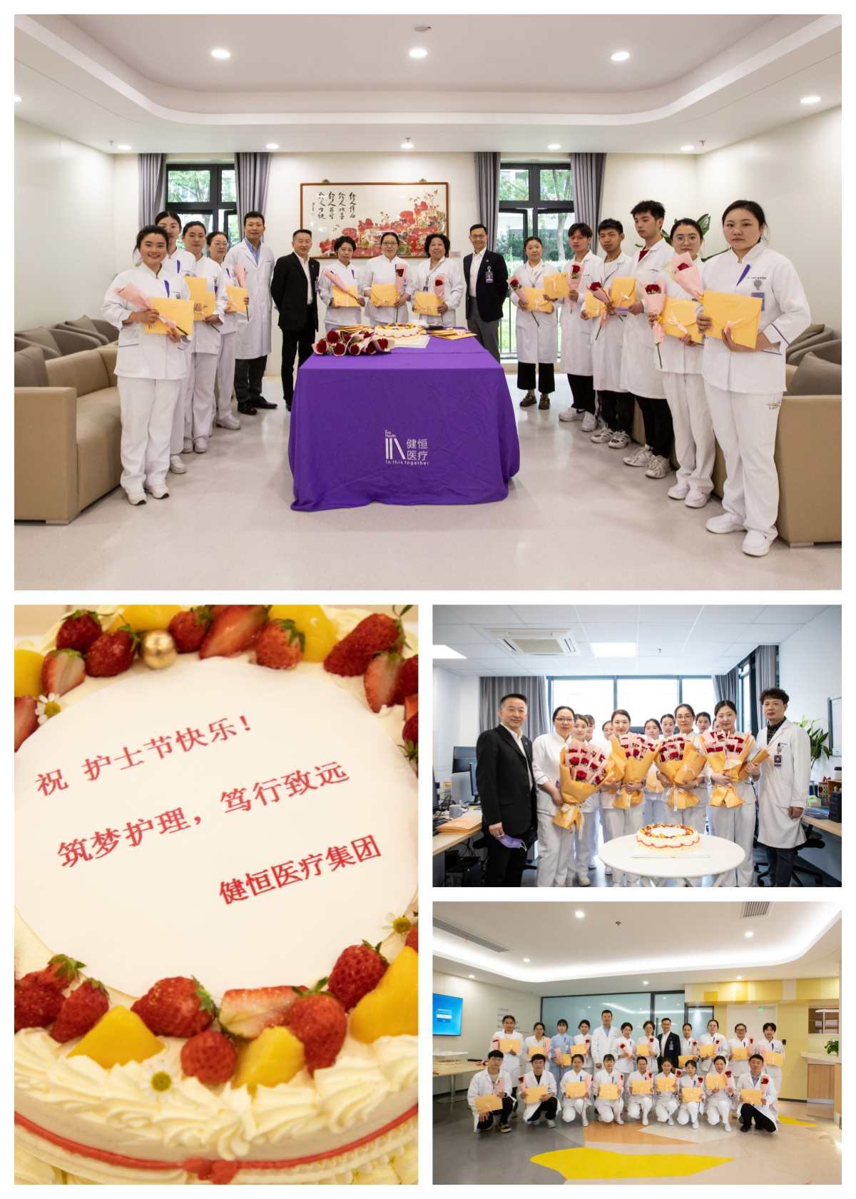 每到一处,领导们都会为大家送上鲜花、定制蛋糕和节日礼物,感谢大家一直以来在岗位上默默奉献,用实际行动传承南丁格尔精神,守护患者的生命健康,并勉励大家要继续锤炼专业技能,以更优质高效的医疗服务,助力医院高质量发展。